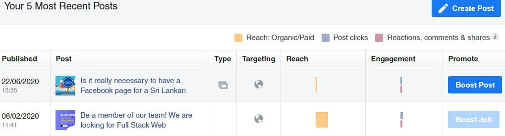 You have your performance data plus your competitors’ performance data!! Why not analyze them? You will get a chance to compare and benchmark against your competitors. Facebook provides total page likes, weekly changes, information on posts, and engagement rates so that any business can compare and get an idea to take further decisions.