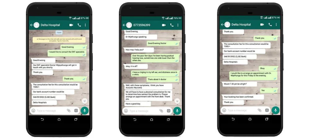 Medical Consultation- Almost everyone has heard the use of medical consultation via SMS. How about Whatsapp?. Using Whatsapp for Medical consultation on common health issues and also for booking an appointment with the doctor. Using Whatsapp for pharmacies to order medicines by sending a photo of the prescription is another use of Whatsapp.