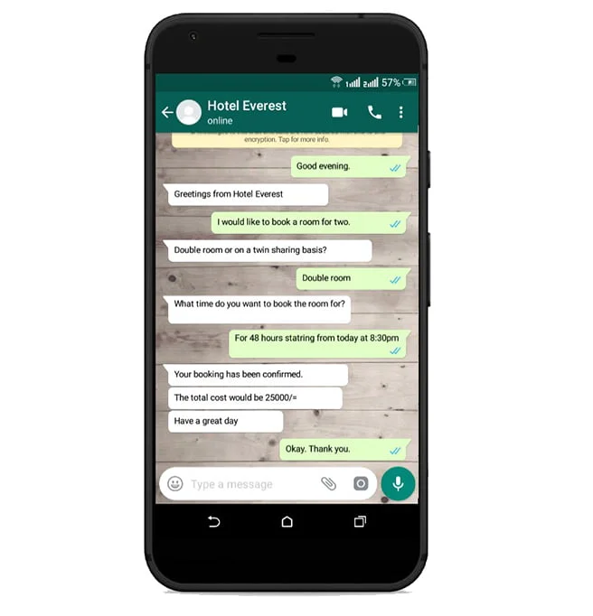 Concierge Services (Booking System)- If you have a business that does bookings eg, hotels, restaurants .etc, using Whatsapp for clients to book their necessary requirements would save time for both the consumer and the business.