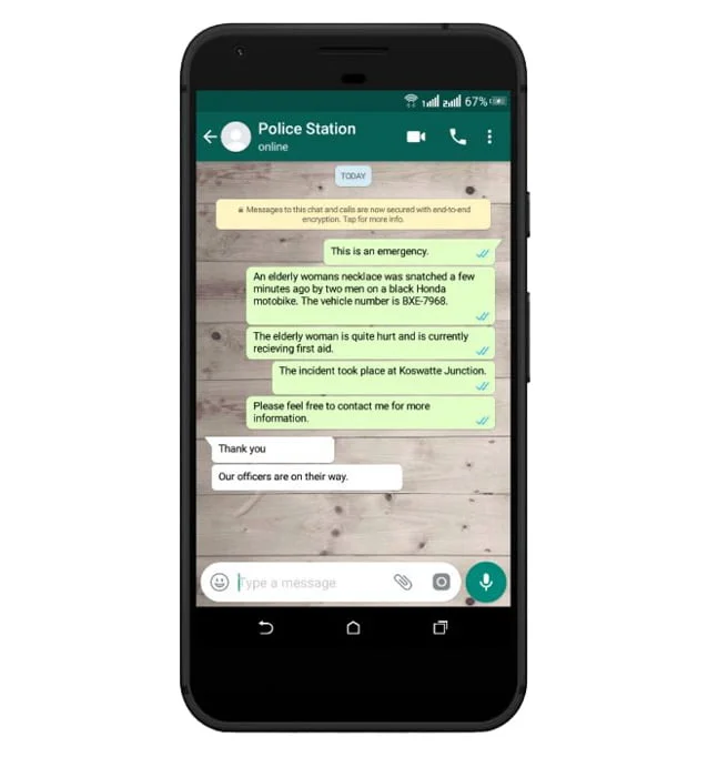 For example, If there is a need for the police, a message can be sent with the location of the incident to a common number which would inform the nearby police-station to look into the matter.